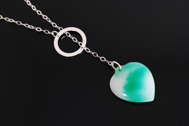 Translucence is the key to beautiful jade, and it’s certainly at the “heart” of this sterling lariat style necklace! Shown 17″ long, plus jade heart on 1″ chain.