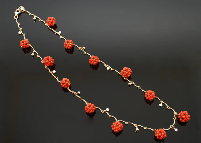 Coral Clusters & Gold Necklace